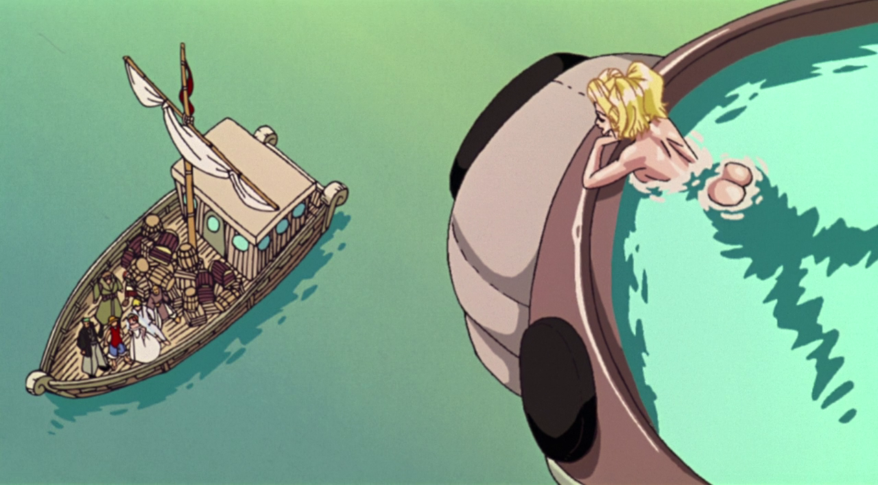 When she first appears she is naked taking a bath in a bathtub that was in the front of the ship She and Boojack kidnapped Nami at the start of the movie as well as capture Sanji later on